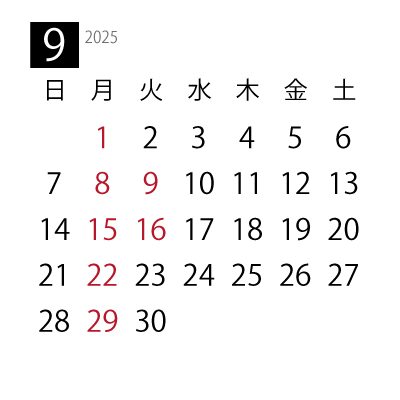 9月の営業スケジュール