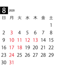 8月の営業スケジュール